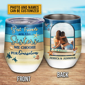 Custom Photo Beach Besties Sisters We Choose Custom Wine Tumbler, Gift For Best Friends
