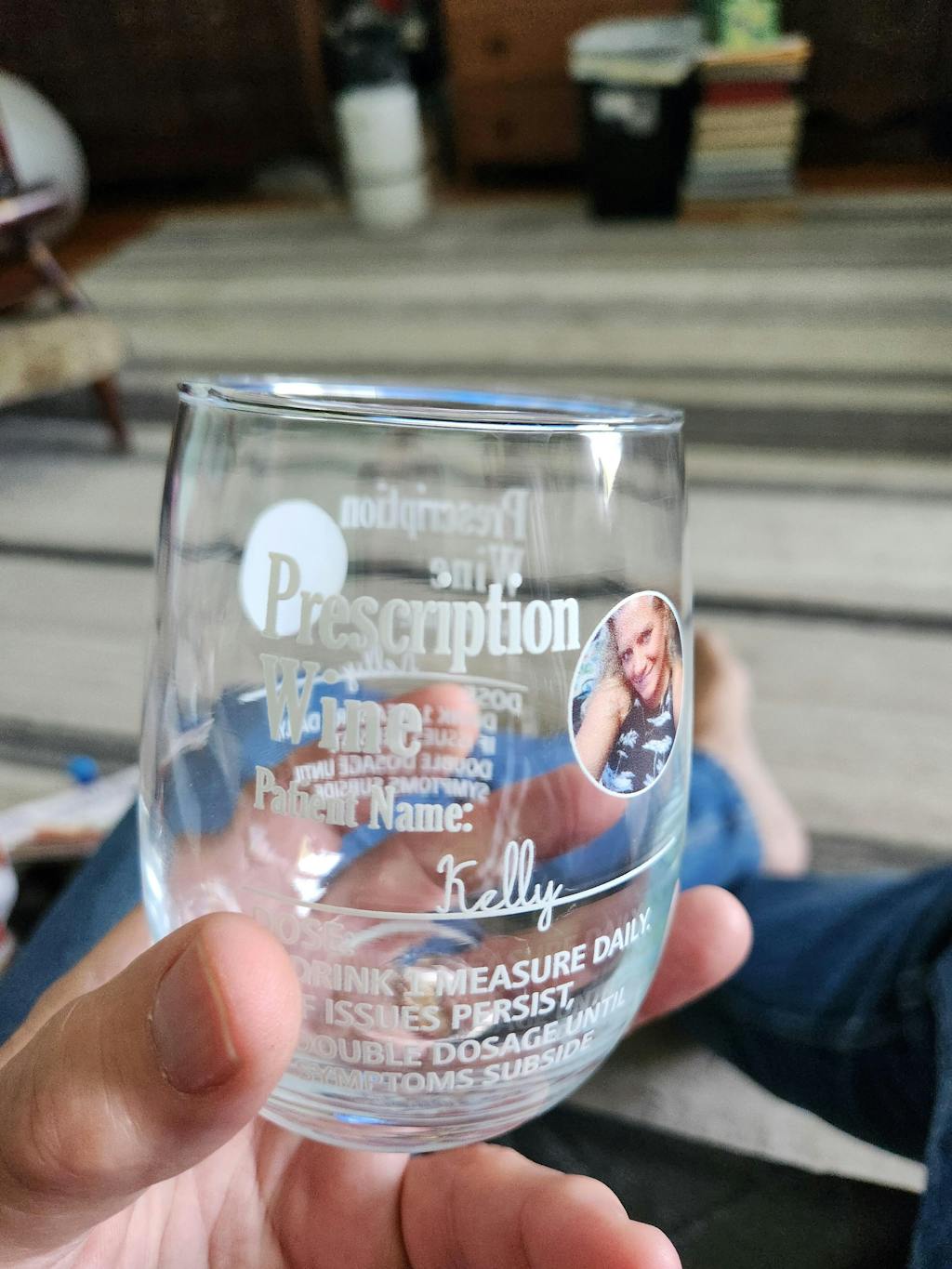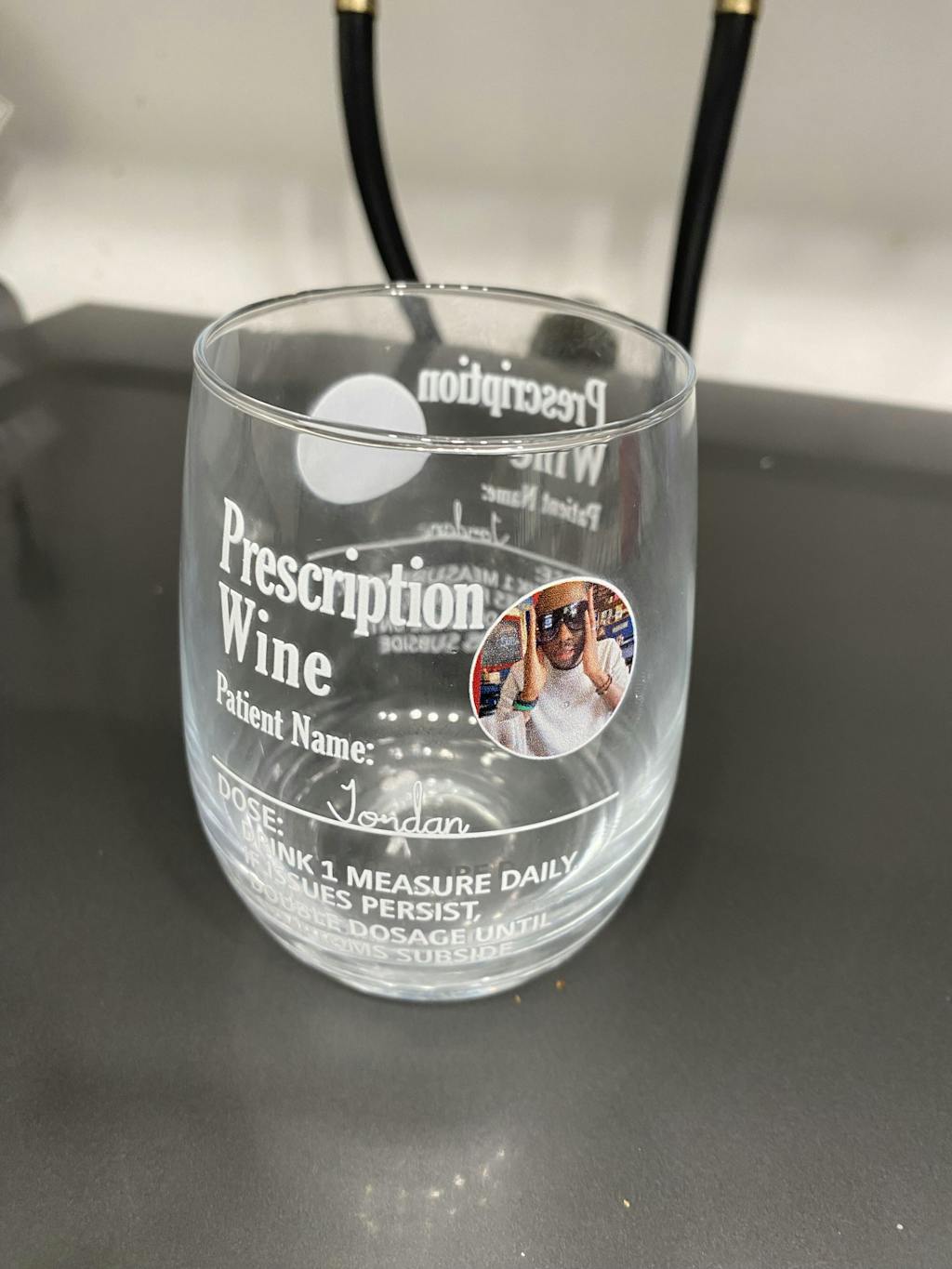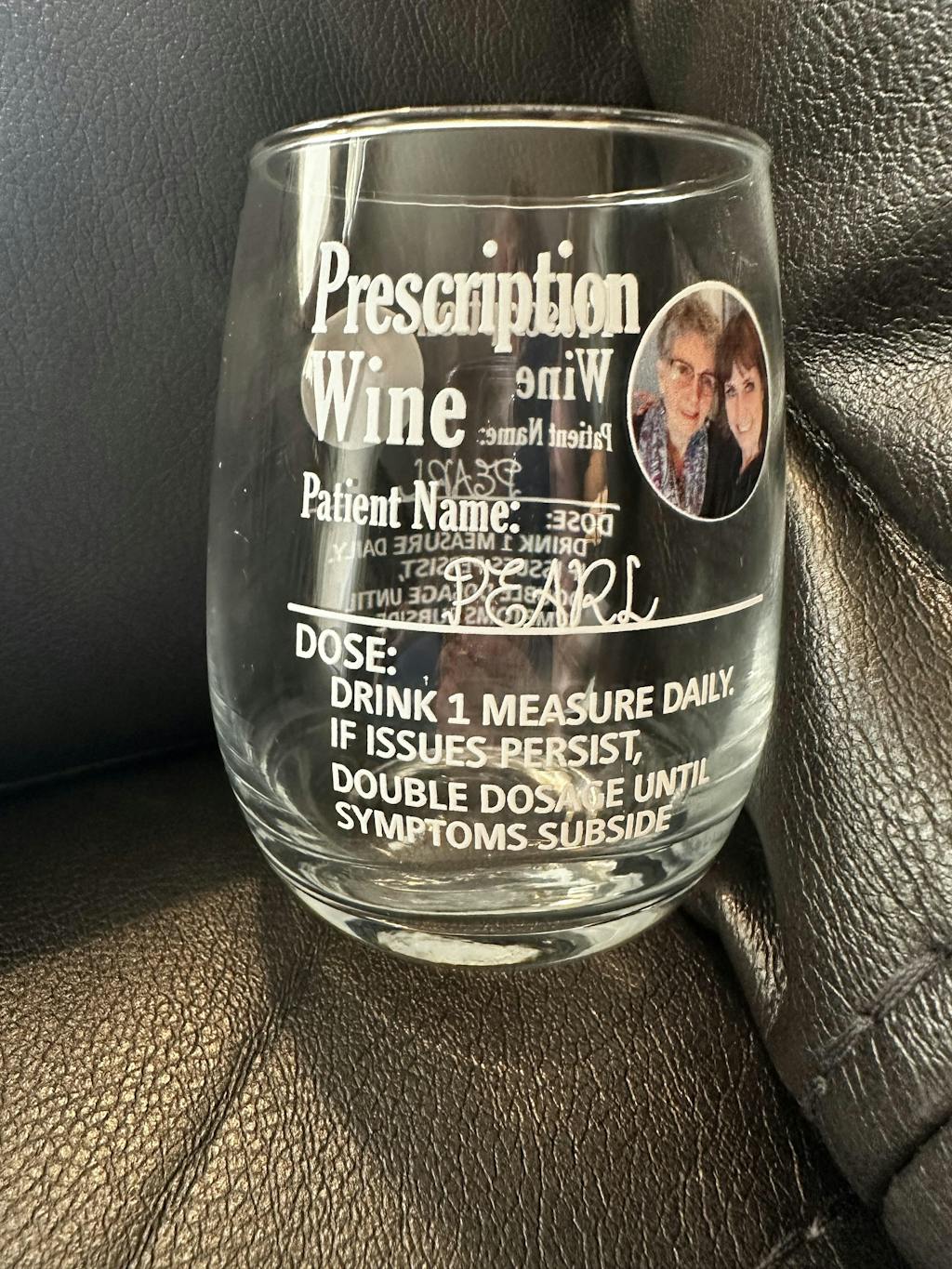 Custom Photo Funny Prescription Drink One Measure Daily - Personalized Stemless Wine Glass
