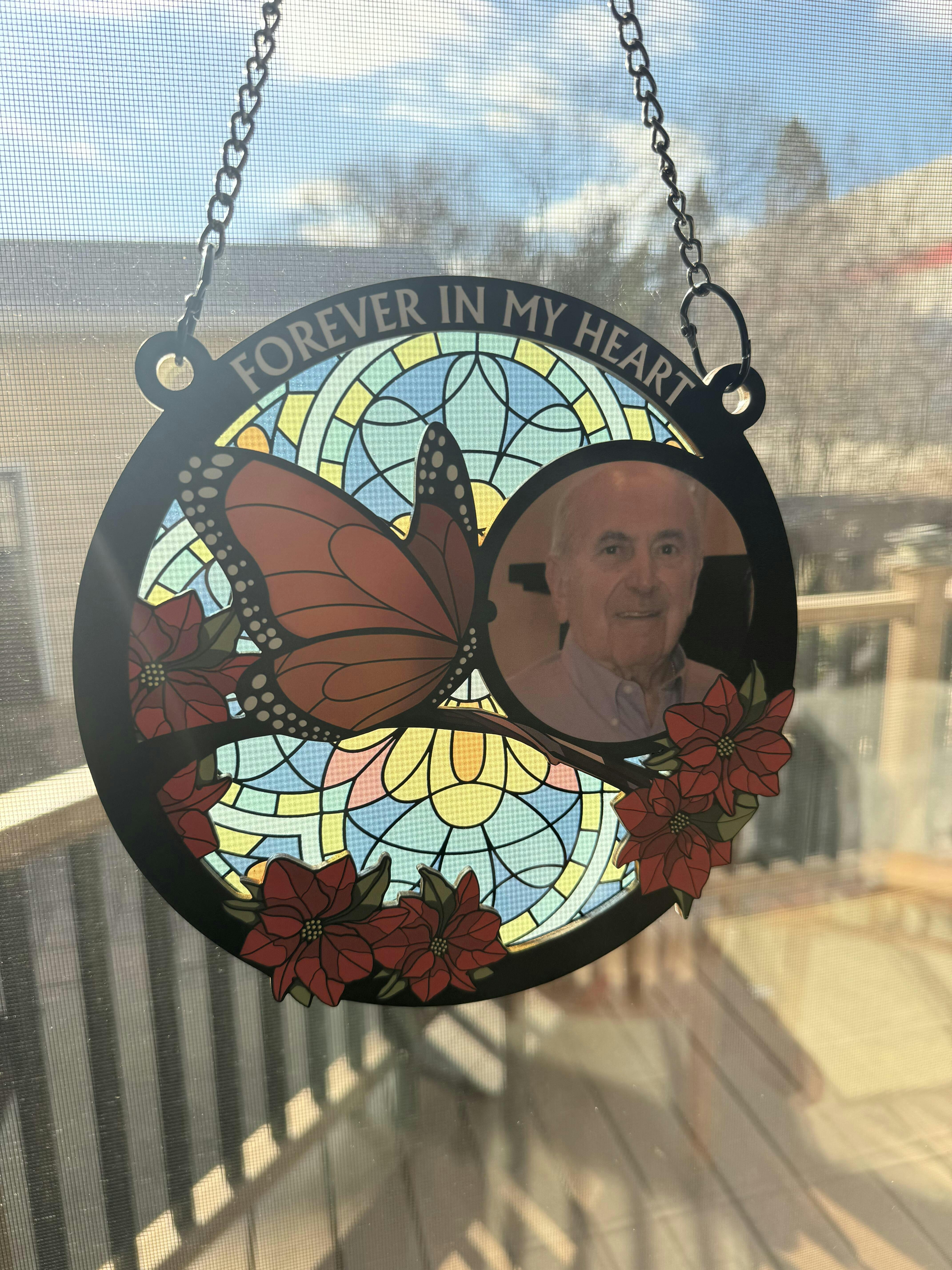 Customizable with a beloved photo, this ornament serves as a meaningful and thoughtful gift for anyone experiencing the sadness of loss. Crafted with care, its design catches the sunlight, casting a gentle glow that fills any space with warmth and solace.
