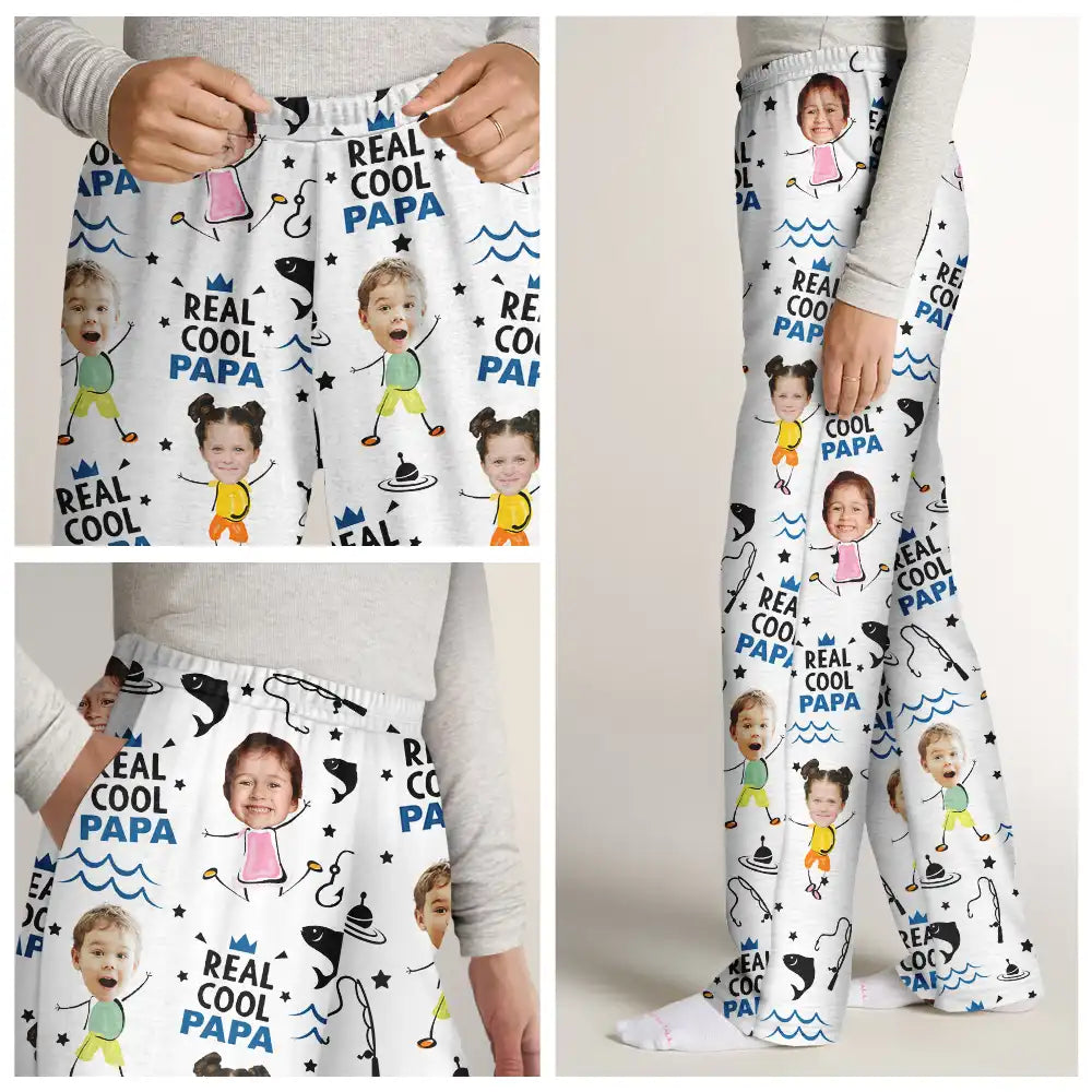 Custom Photo Reel Cool Papa Dad Funny Kids - Personalized Sweatpants