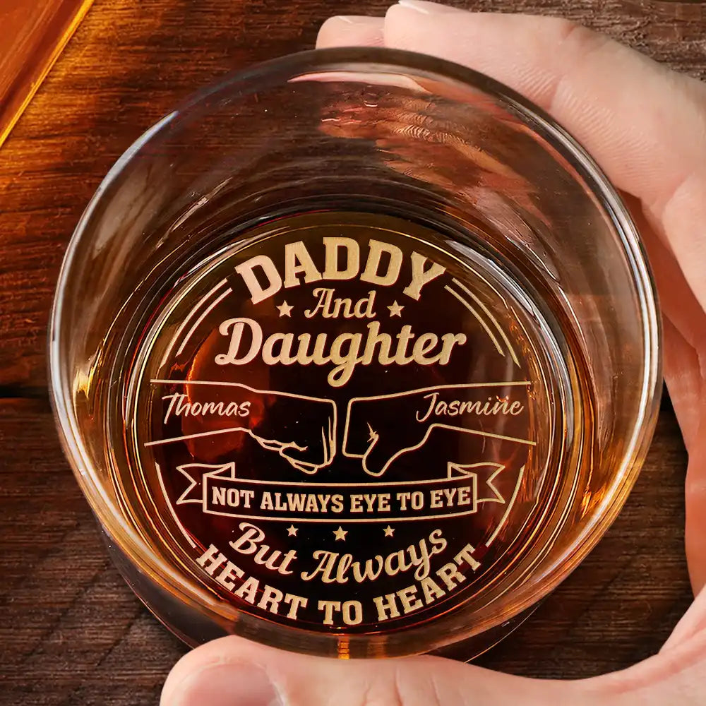 Daddy And Children Always Heart To Heart - Personalized Engraved Whiskey Glass