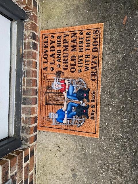 Dog Couple A Lovely Lady And A Grumpy Old Man Live Here - Gift For Dog Lovers - Personalized Custom Doormat
