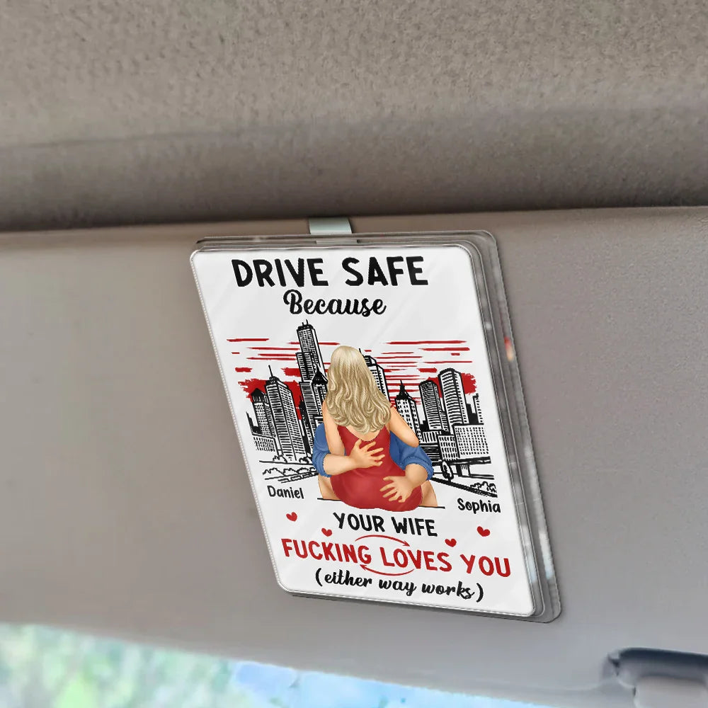 Drive Safe Because Your Wife Loves You - Personalized Custom Shaped Acrylic Car Visor Clip