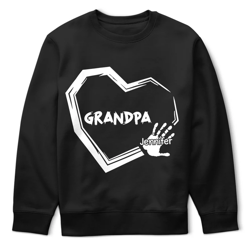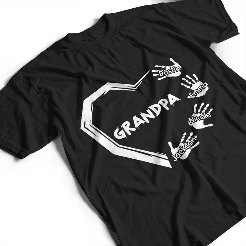 Grandpa Dad Heart Handprints - Personalized T Shirt