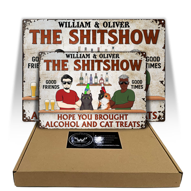 Hope You Brought Alcohol And Cat Treats Couple Husband Wife - Backyard Sign - Personalized Custom Classic Metal Signs