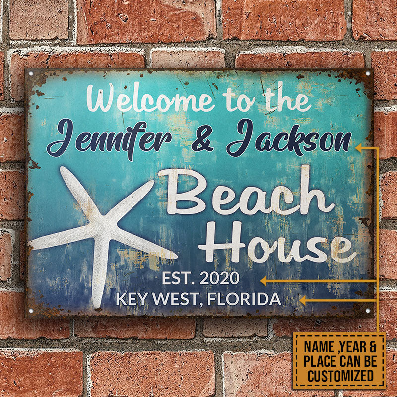 Personalized Beach Welcome To Beach House Custom Classic Metal Signs