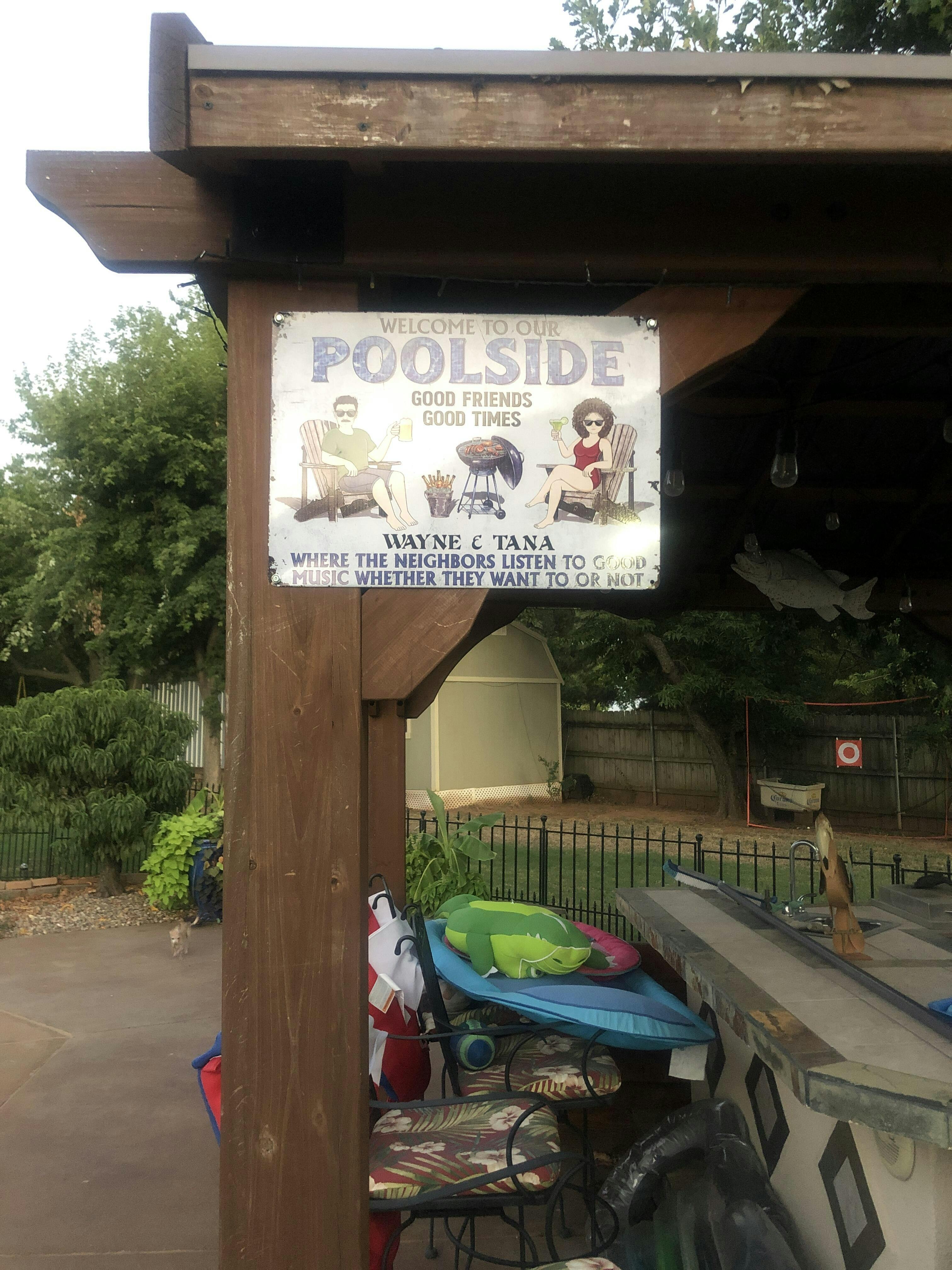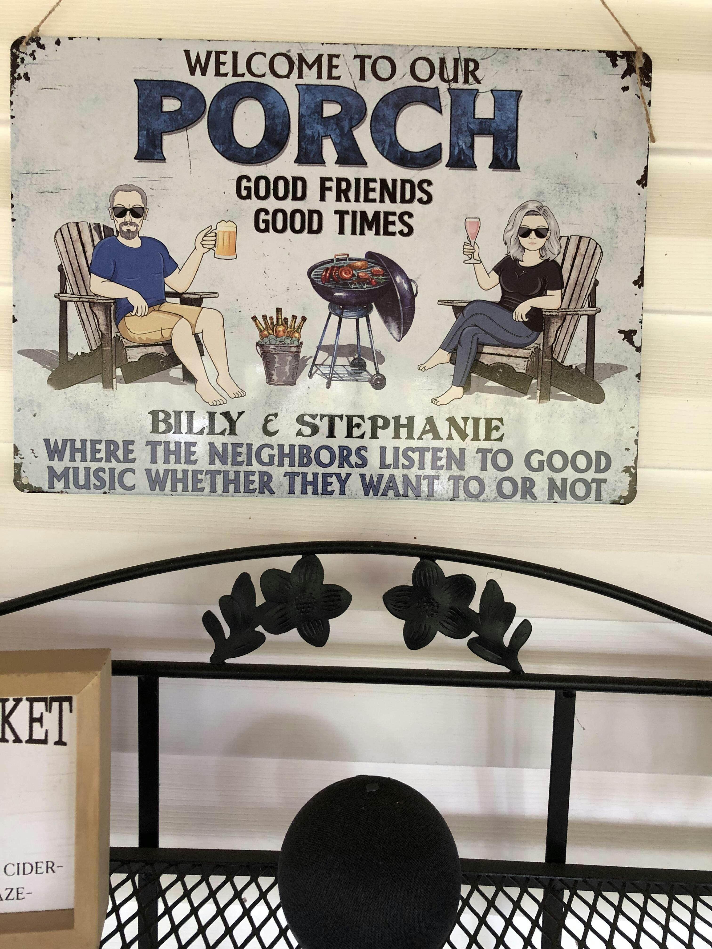 Poolside Grilling Listen To The Good Music Couple Husband Wife - Backyard Sign - Personalized Custom Classic Metal Signs
