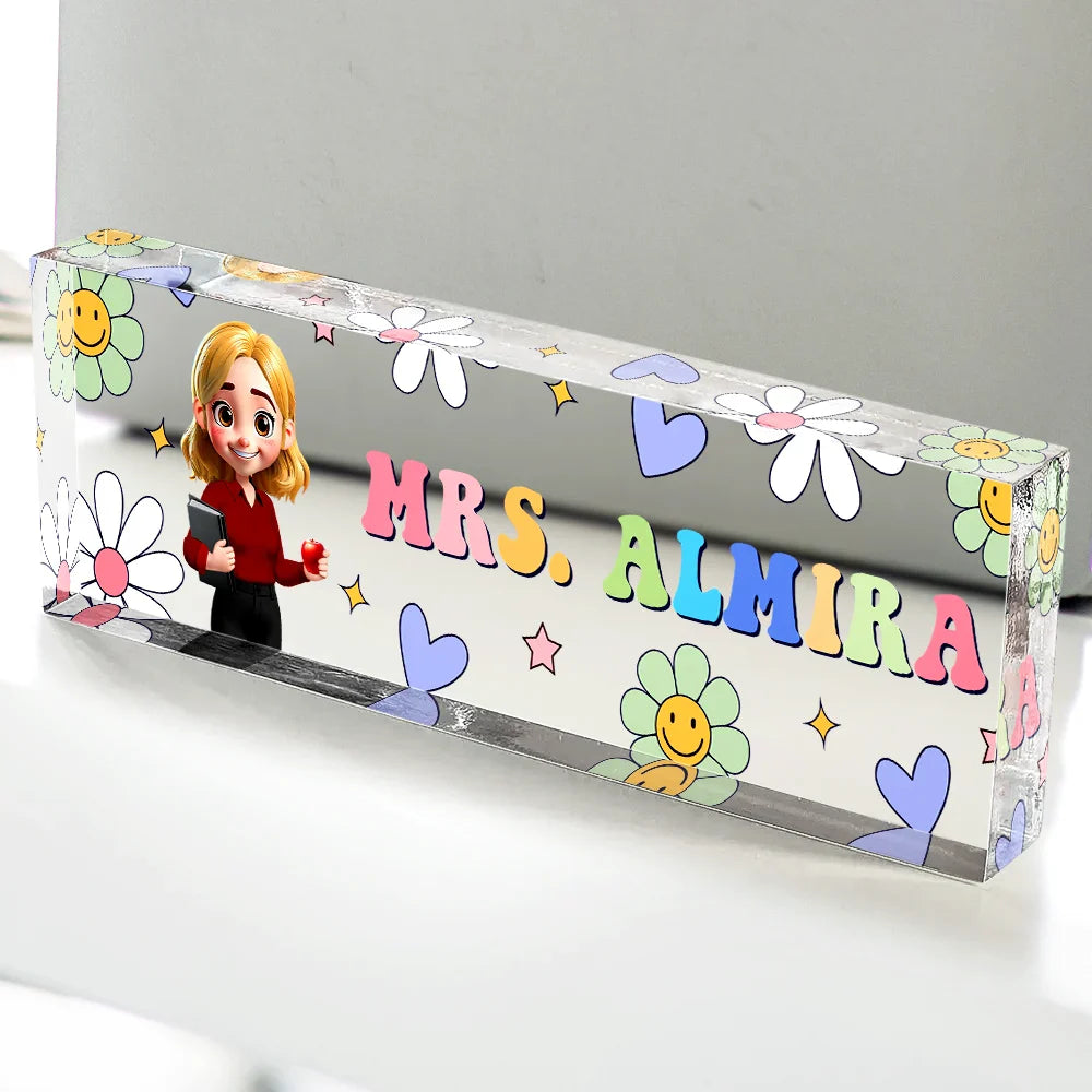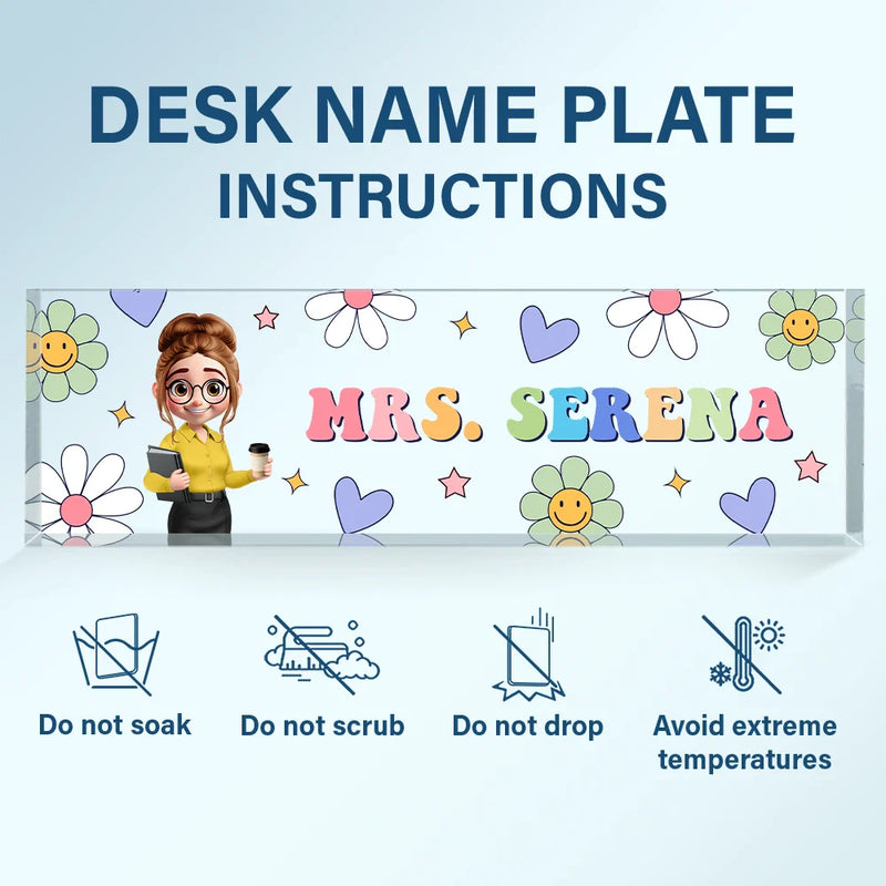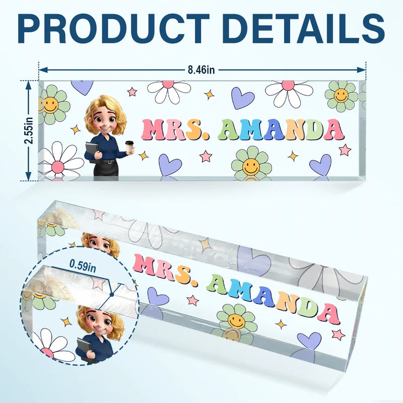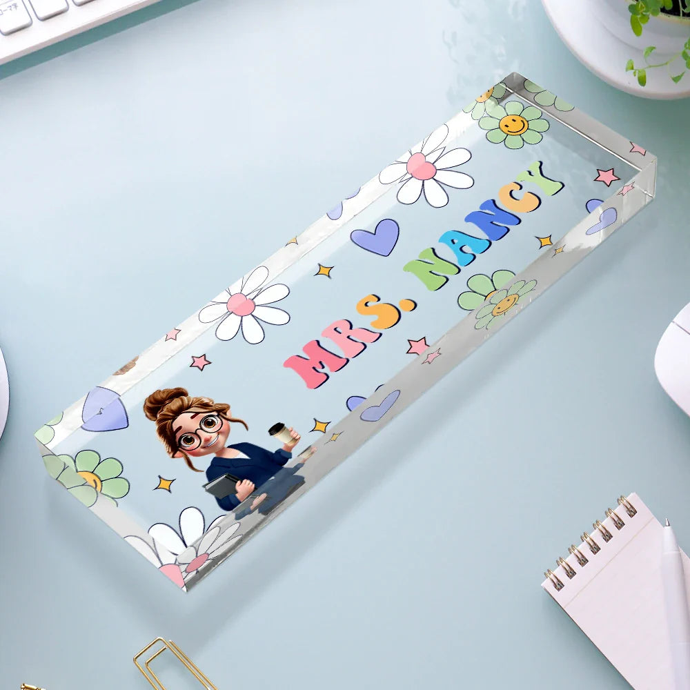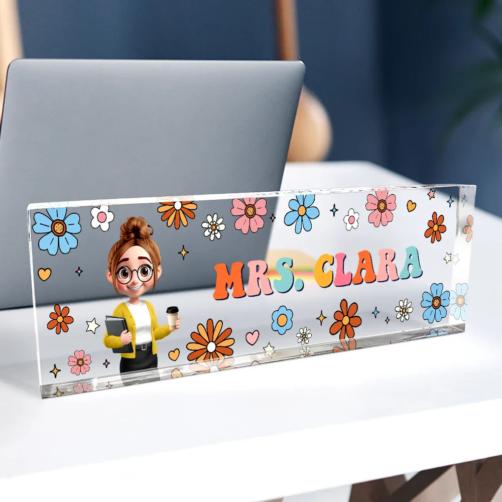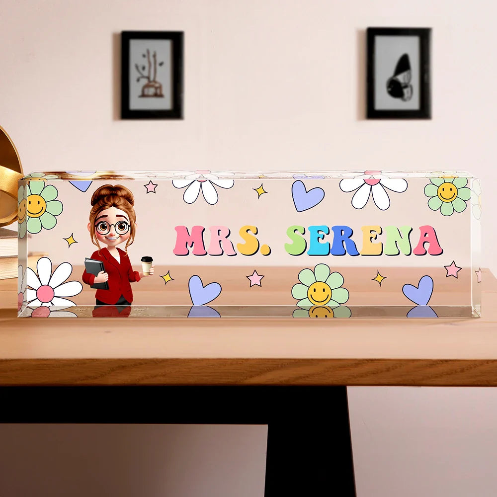 Text Pattern Groovy Retro Teacher Name - Personalized Desk Name Plate