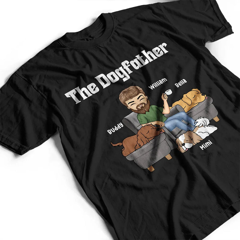 Celebrate your love for your furry family with "The Dogfather Dogmother" Personalized T-Shirt. This awesome and unique t-shirt is the perfect gift for dog moms, dog dads, and dog lovers. Make every day joyful and meaningful with this delightful piece that showcases your passion for your four-legged friends.