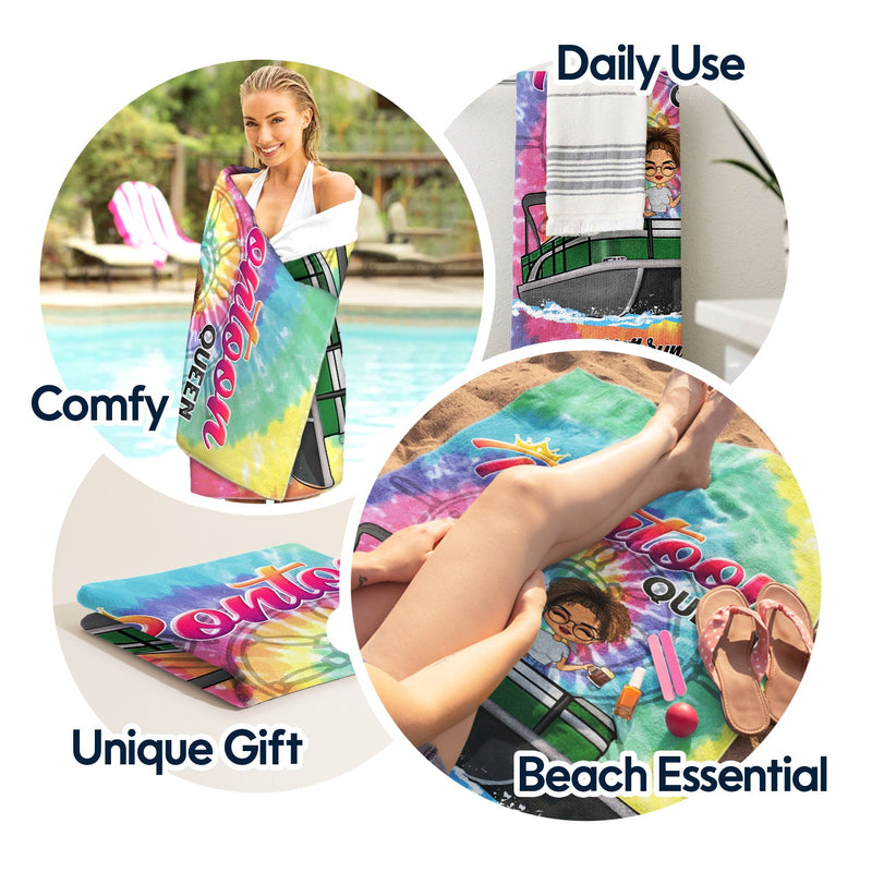 Tie Dye Pontoon Queen - Gift For Pontoon Owner - Personalized Custom Beach Towel